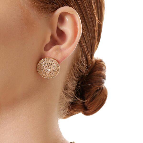 Brinco Argola M de pino elos Lisos e Cravejados com micro zircônias banho Ouro