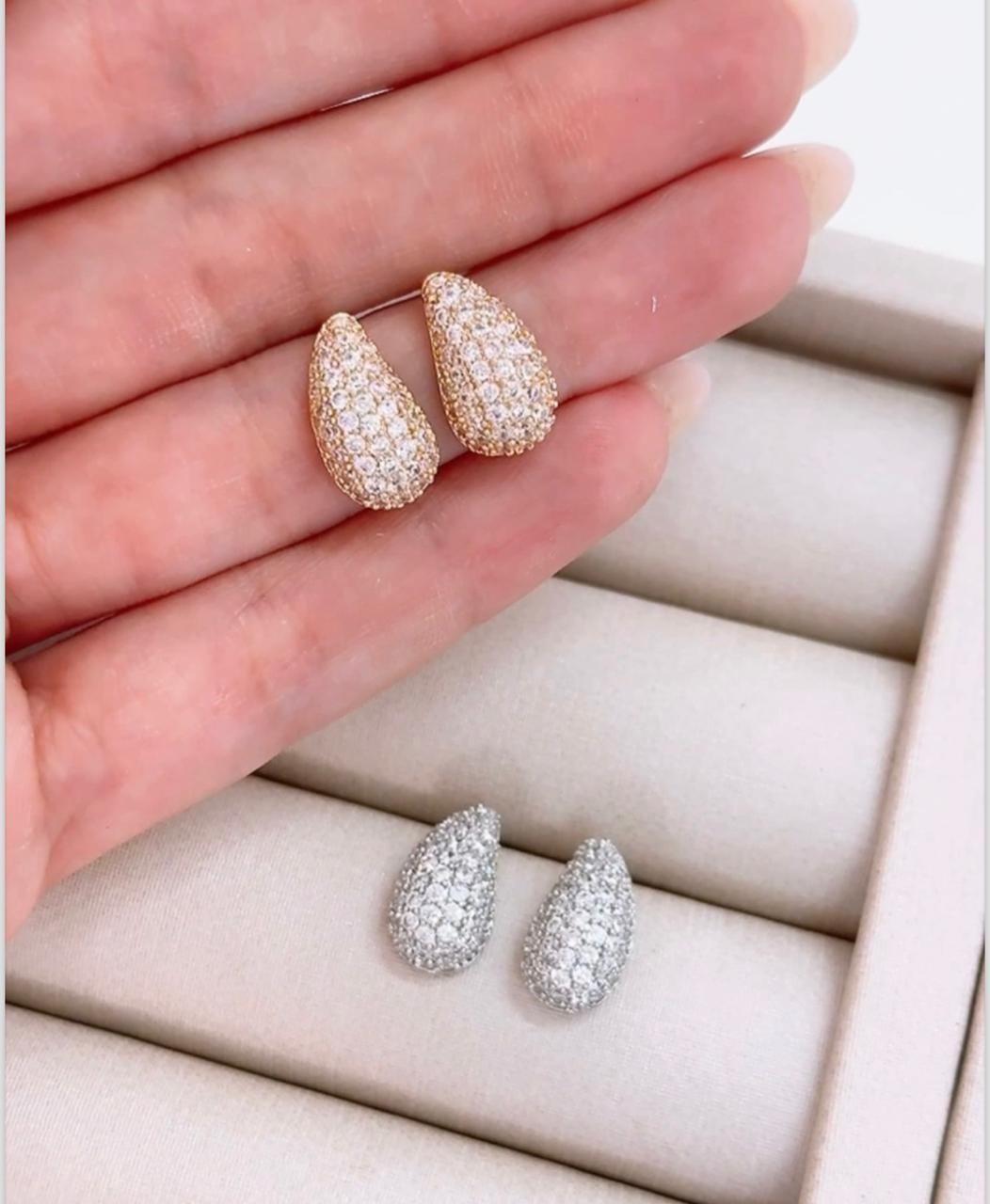 Brinco Gota Cravejada M Banho Ouro