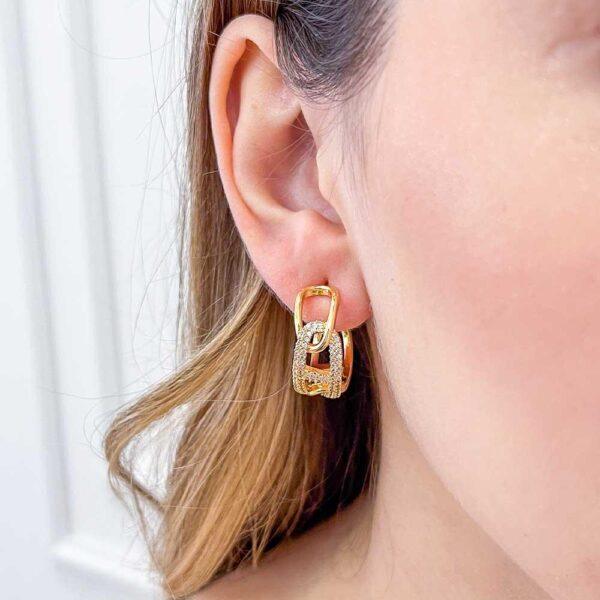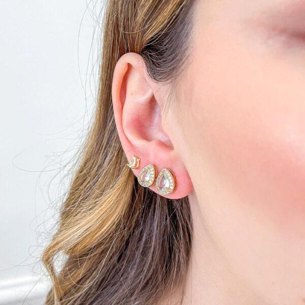 Brinco Gota Pedra Esmeralda cravejada G Banho Ouro 18k