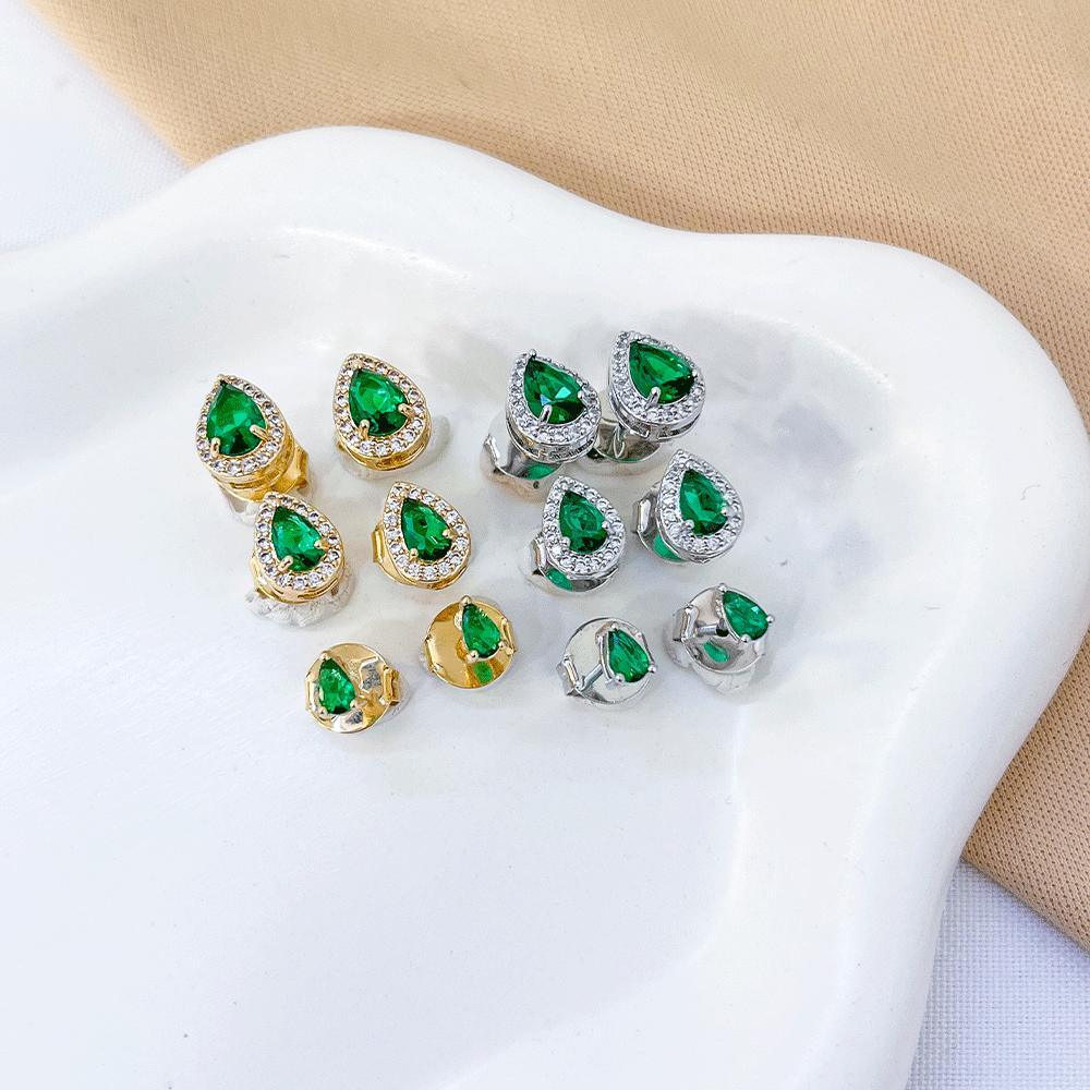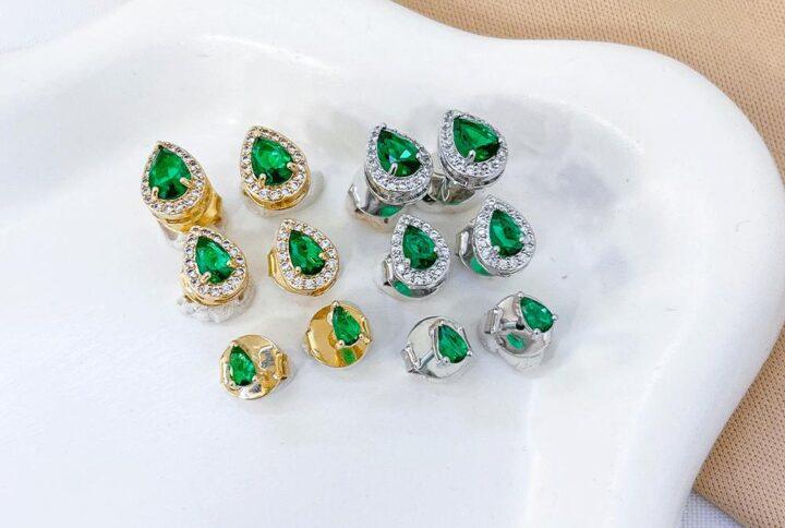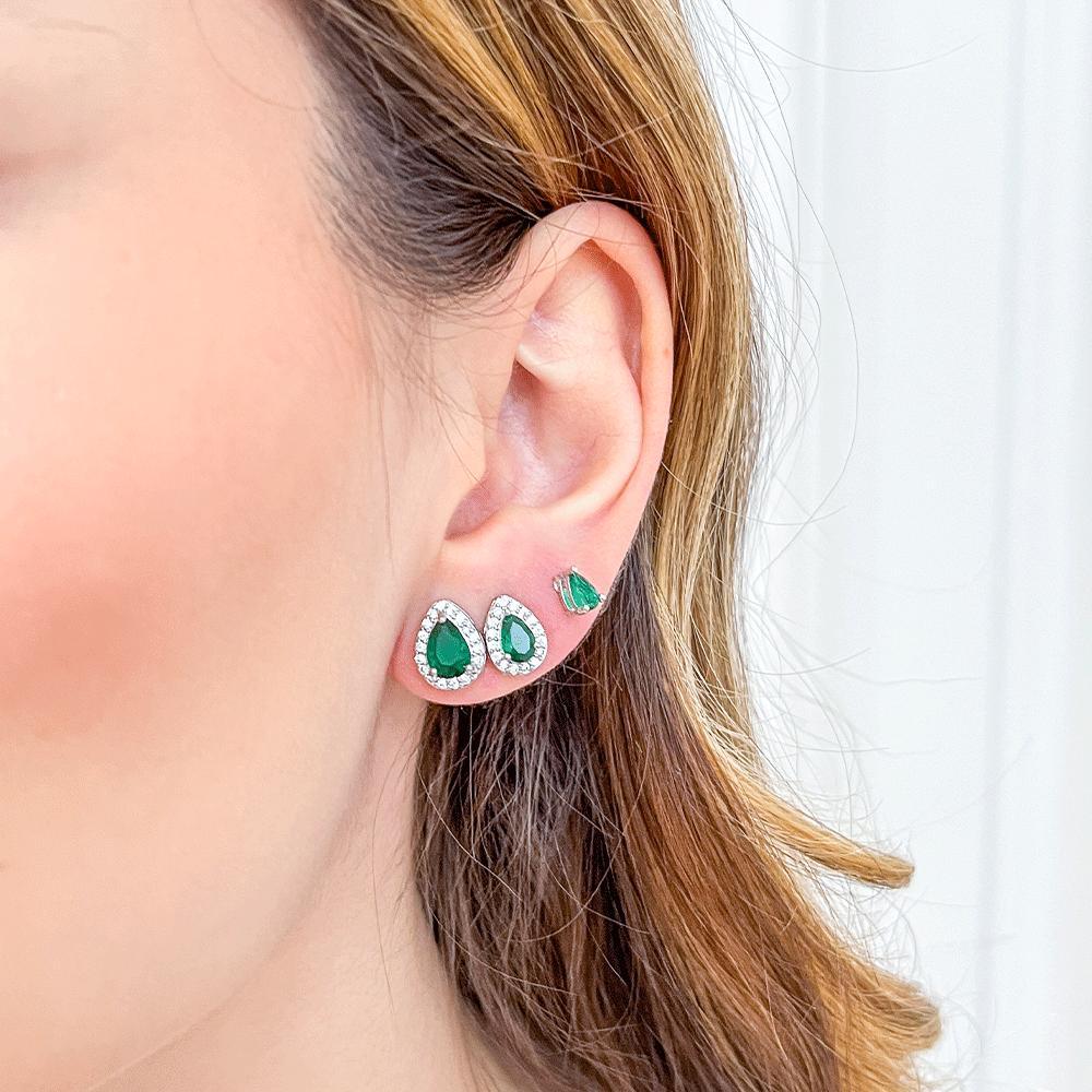 Brinco Gota Pedra Esmeralda cravejada G Banho Ouro 18k