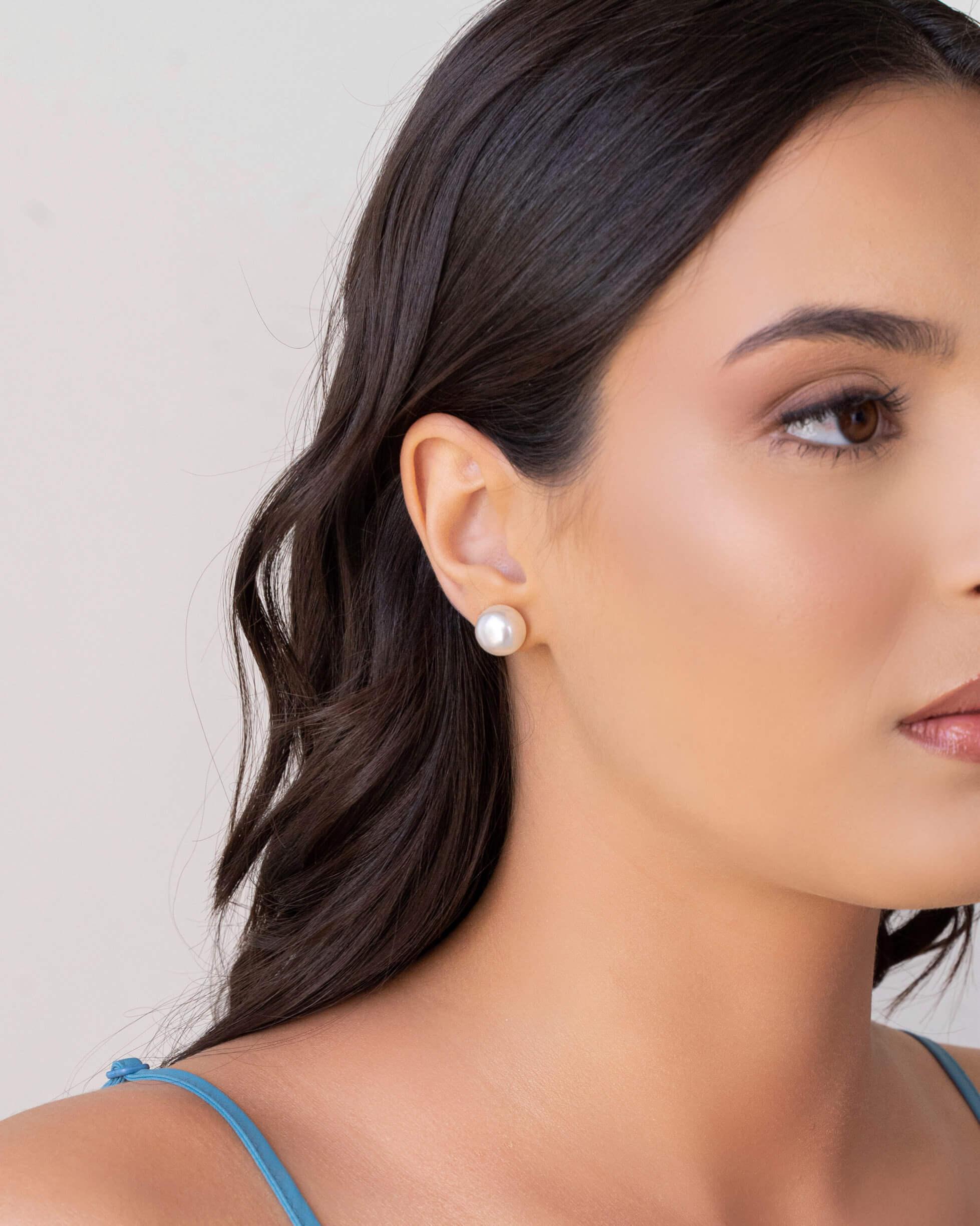 Brinco Pérola Achatada 12 mm Banho Dourado