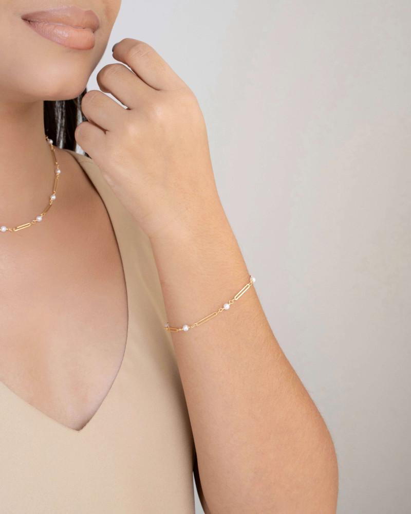 Pulseira Elos com Pérolas Banhado a Ouro 18K